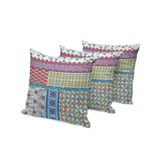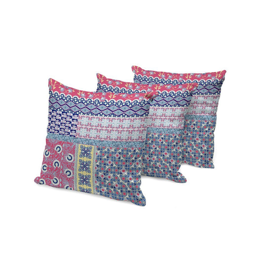 Set of Three 16" X 16" Blue and Pink Abstract Indoor Outdoor Throw
