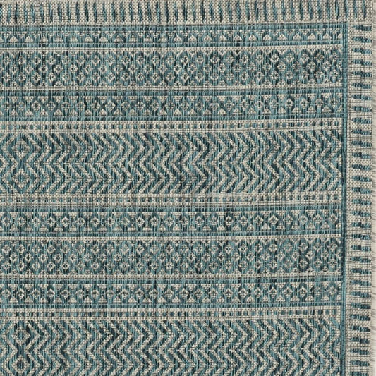 3' X 5' Teal Blue Geometric Indoor Outdoor Area Rug