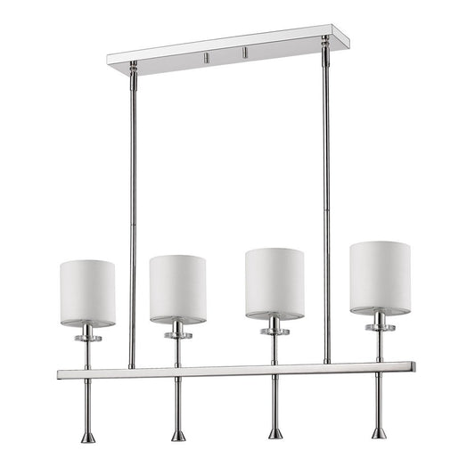 Kara 4-Light Polished Nickel Island Pendant With Fabric Shades And Crystal Bobeches