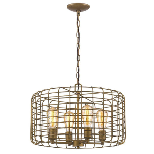 Lynden 4-Light Raw Brass Drum Pendant With Wire Cage Shade