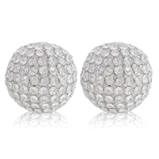 Set of Two Clear Faux Crystal and Silver Decorative Orb Tabletop Sculptures
