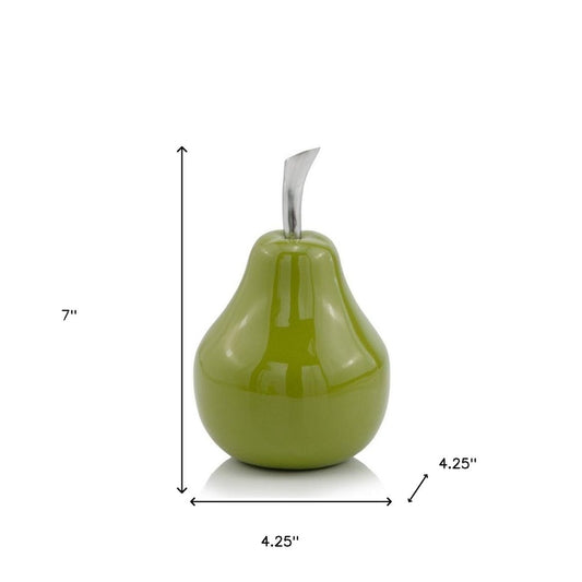 7" Green Aluminum Decorative Pear Tabletop Sculpture