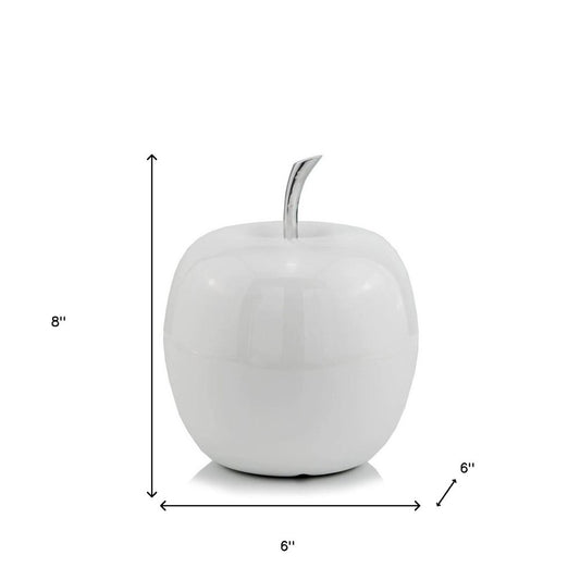 8" White Aluminum Decorative Apple Tabletop Sculpture