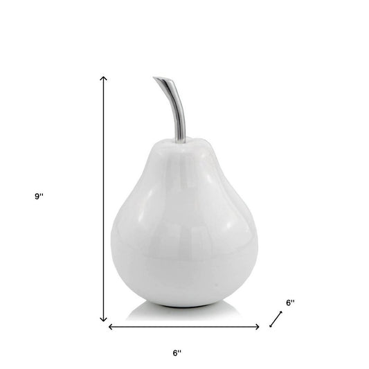 7" White Aluminum Decorative Pear Tabletop Sculpture