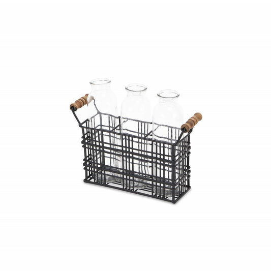 6" Brown and Clear Wire Basket and Glass Jar