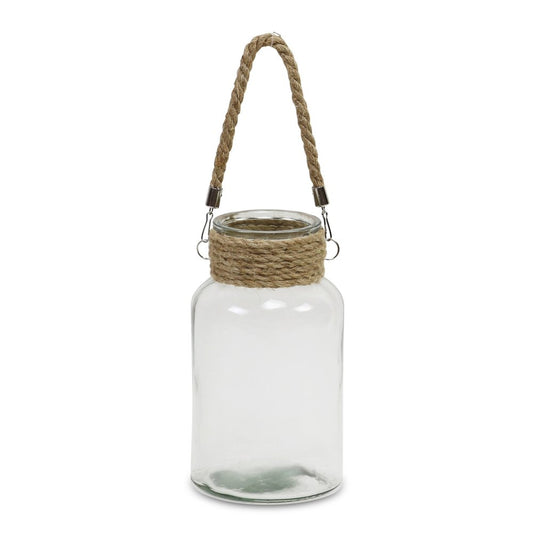 12" Clear And Brown Glass Jar with Rope