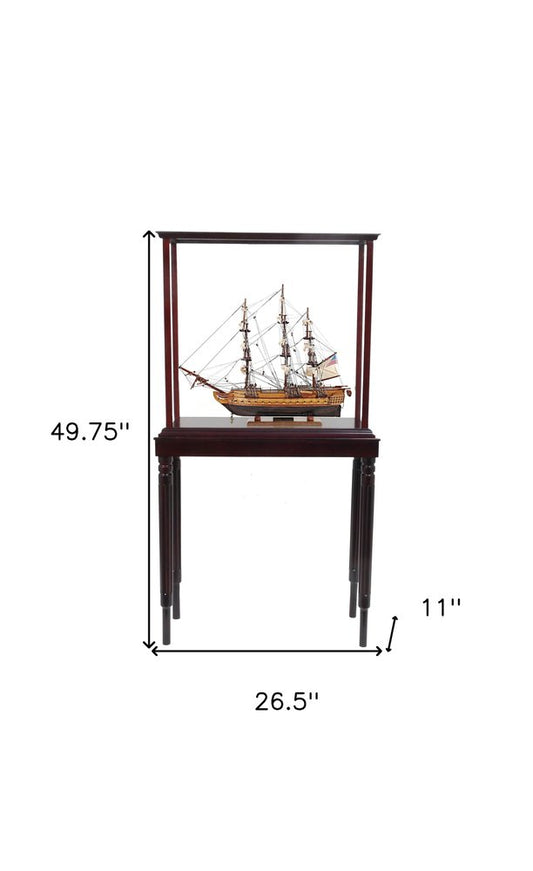 32" Wood Brown Solid Wood Hand Painted 1797 USS Constitution Medium Display Case Model Boat