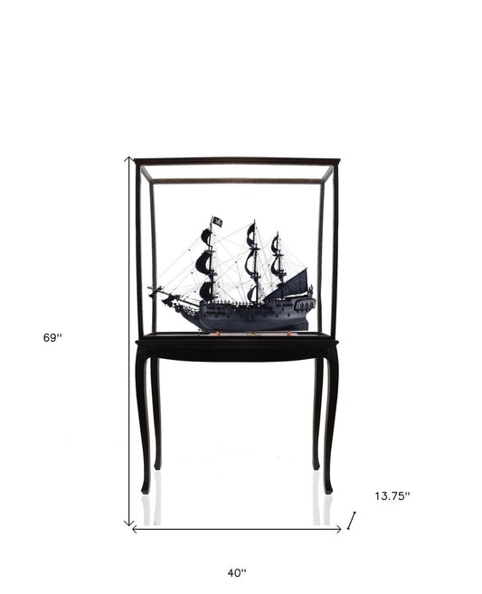 30" Black Solid Wood Hand Painted Black Pearl Pirate Medium Open Display Case Model Boat