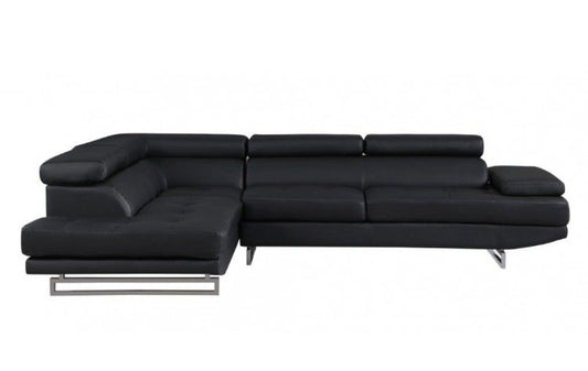 Black Faux Leather L Shaped Two Piece Corner Sectional