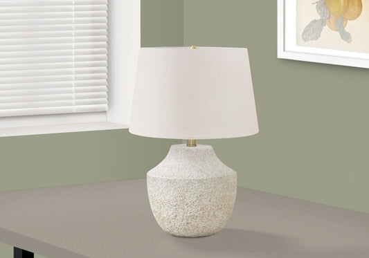 22" Cream Concrete Urn Table Lamp With Cream Abstract Empire Shade