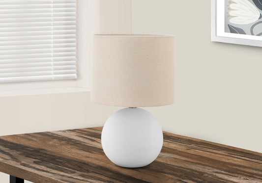 16" Cream Ceramic Round Table Lamp With Cream Drum Shade