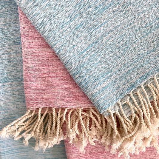 39" X 71" Beige and Pink Cotton Striped Turkish Towel Throw Blanket with Tassels