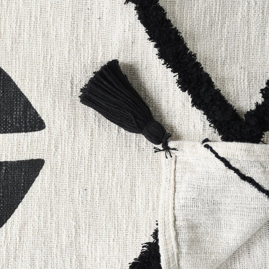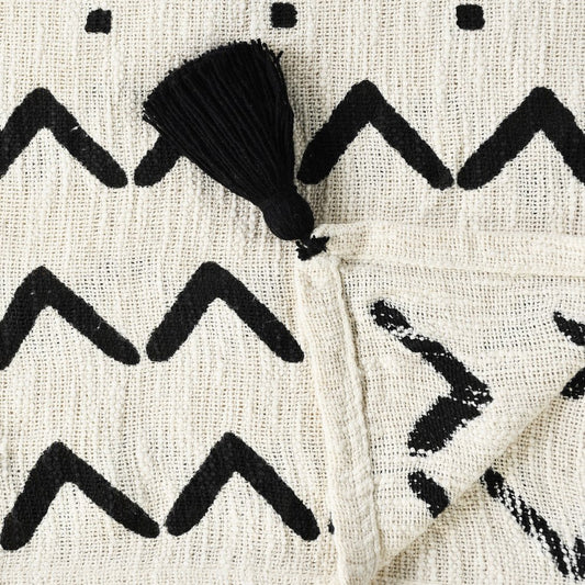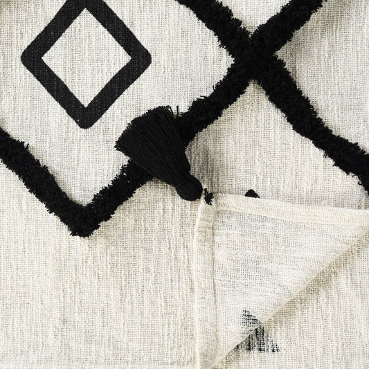 60" X 50" Black and White Woven Cotton Geometric Throw Blanket with Tassels