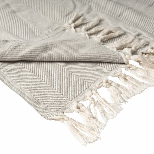 50" X 60" Gray Woven Cotton Herringbone Throw Blanket with Tassels