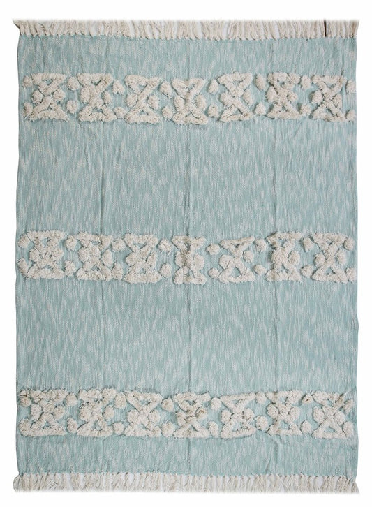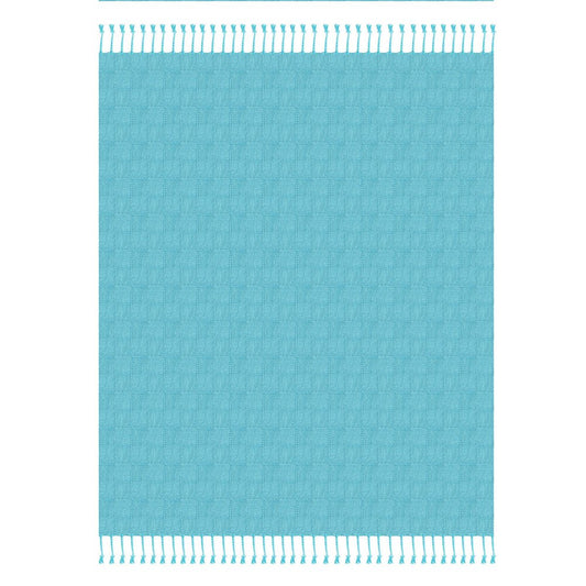 50" X 60" Aqua And Off White Cotton Woven Geometric Throw Blanket with Fringe
