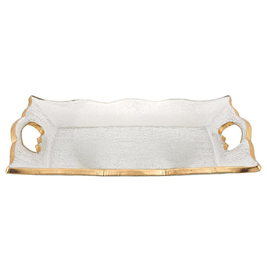 11" Clear And Gold Seeded Glass Serving Tray With Handles
