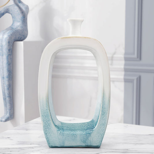 14" Aqua And White Ombre Ceramic Table Vase