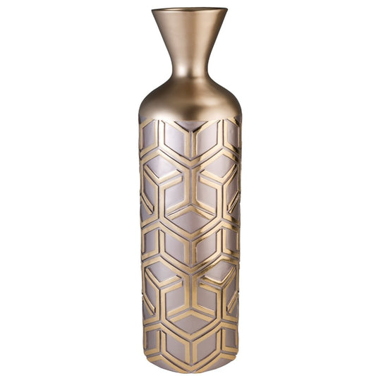 22" Rose Gold Geometric Cylinder Polyresin Floor Vase