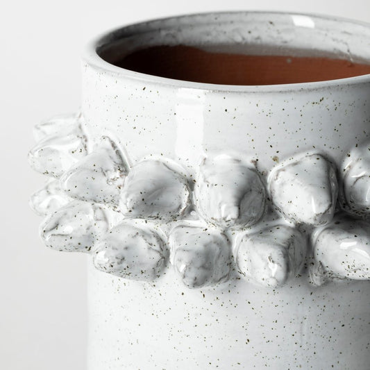 19" White Polka Dots Ceramic Cylinder Table Vase
