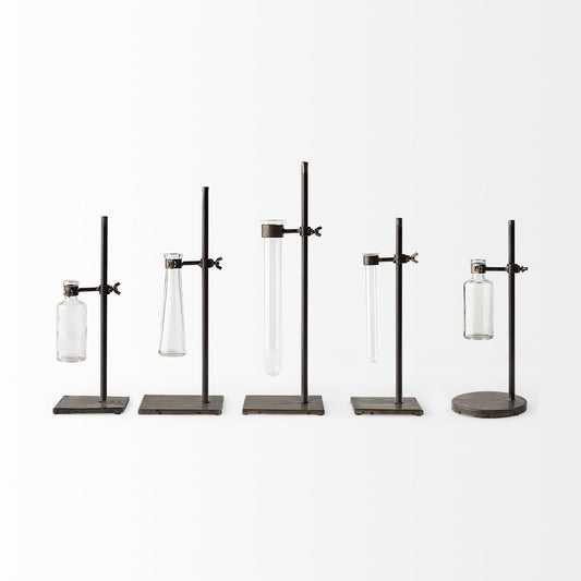 8" Clear and Black Glass and Metal Abstract Cylinder Table Vase