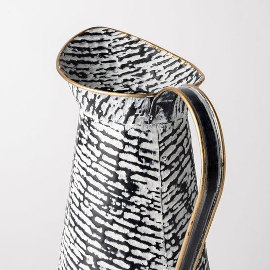 14" Black And White Abstract Cylinder Metal Jug Vase