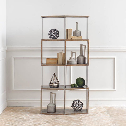 19" Natural Geometric Cylinder Solid Wood Table Vase