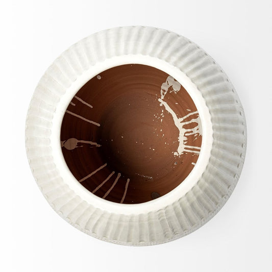 15" Brown And Gray Geometric Cylinder Ceramic Table Vase