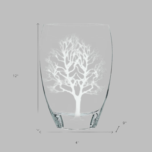 12 Mouth Blown Frosted Crystal European Made Tree Of Life Vase