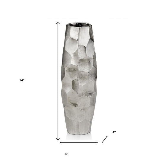 14" Aluminum Silver Faceted Geometric Cylinder Table Vase