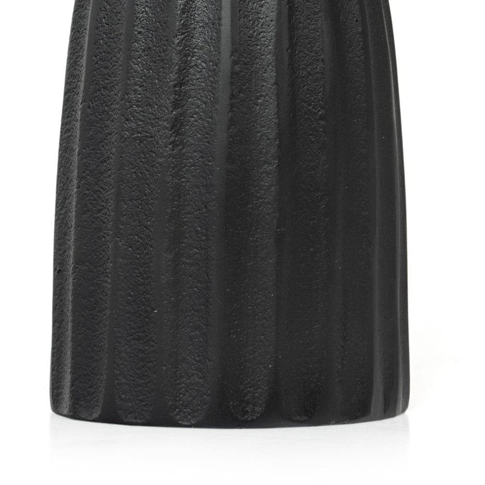 10" Black And Gold Striped Aluminum Tabletop Pillar Candle Holder