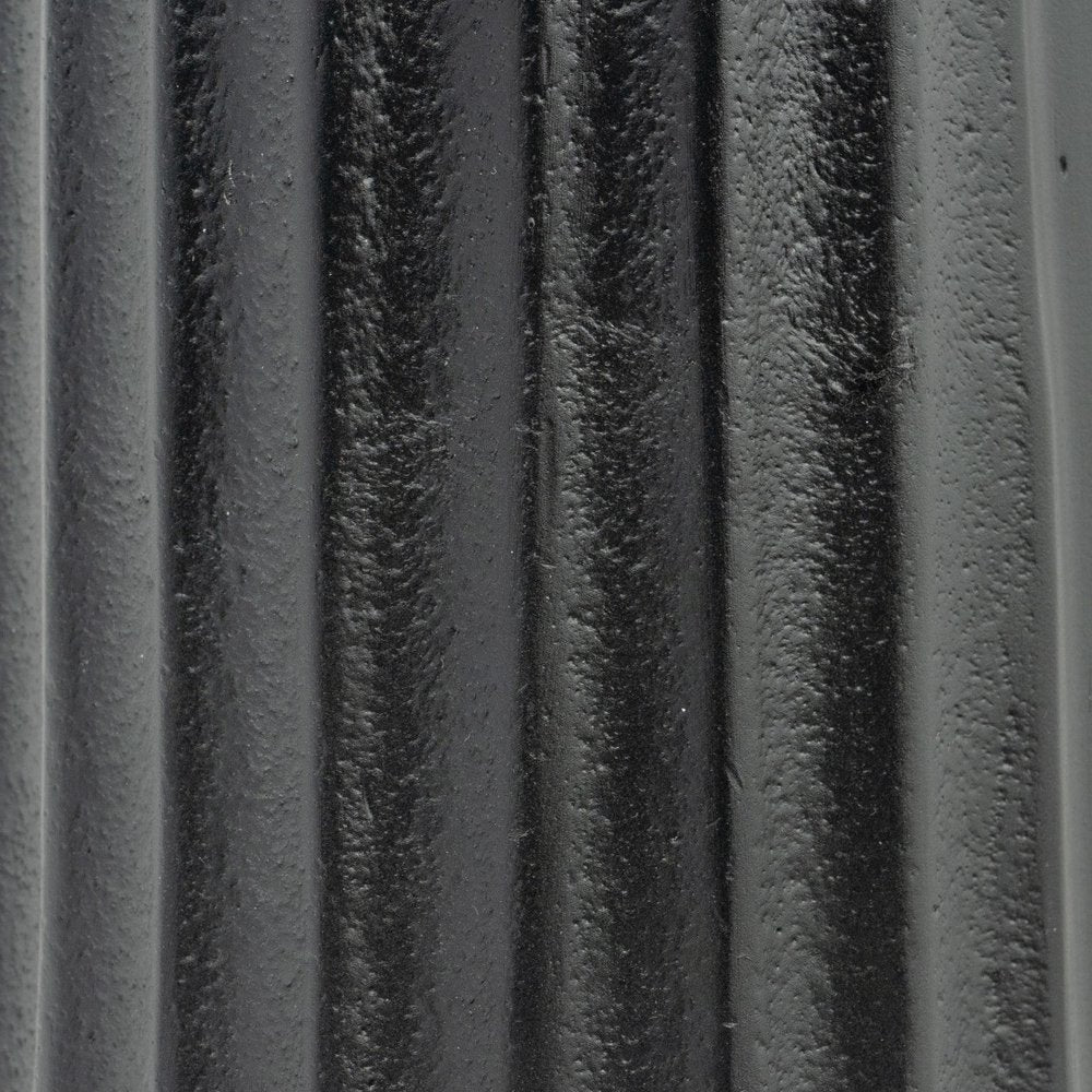 This 10-inch black and gold striped aluminum tabletop pillar candle holder is perfect for creating an elegant atmosphere on your tabletop or mantel. This candleholder is the perfect illuminating design to accent your space in style. Candleholders are a decorative accent on their own. With our without candles. 10-inch h x 4-inch w x 4-inch d.