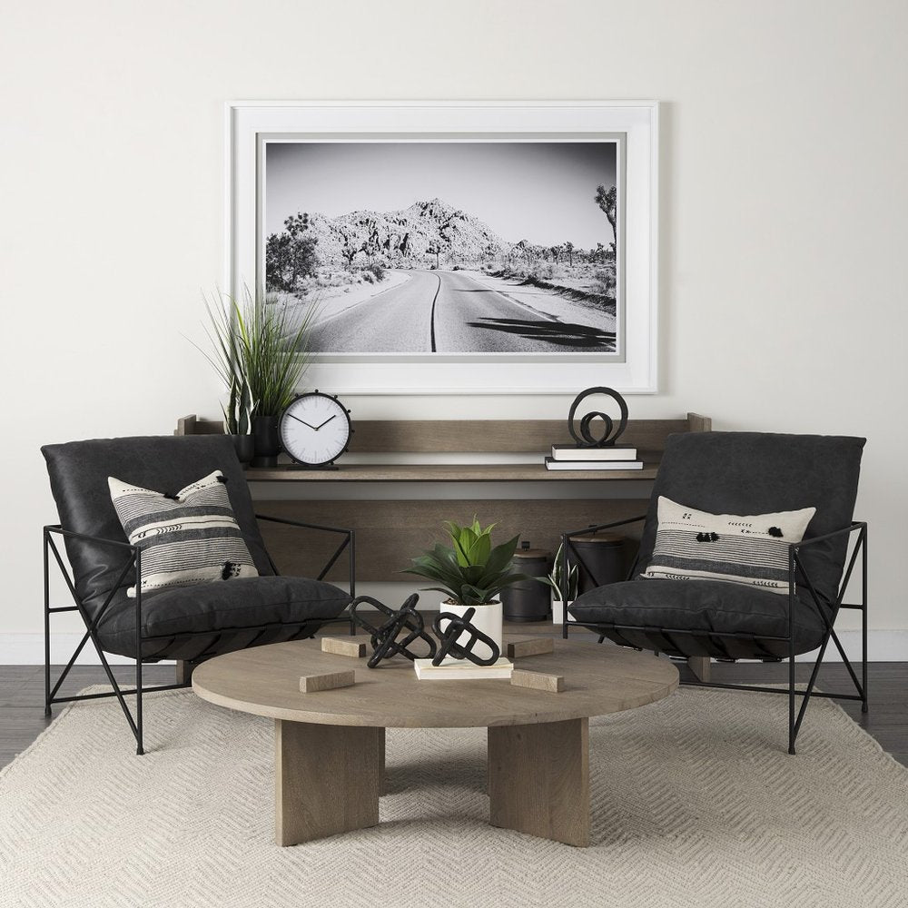 This 10-inch black metal chain link tabletop sculpture is the perfect modern with a touch of industrial styling decorative accessory for your home. Crafted from from solid metal with an organic style hammered texture and a black finish that gives the piece vintage vibes. There are three separate oval metal shapes that intersect to create this 3D chain link shape. Display it on your bookshelf, or use it as coffee table decor. 10-inch H x 10-inch W x 10-inch D