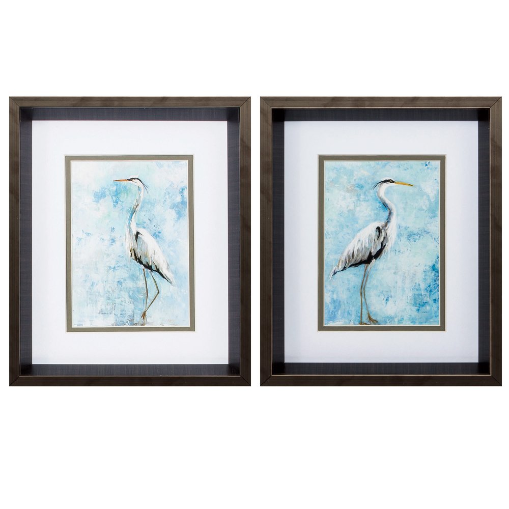10" X 12" Brushed Silver Frame Hazy Morning Heron (Set Of 2)