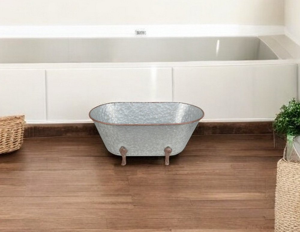 Unique and decorative, this 11-inch gray galvanized metal hand painted tabletop sculpture will leave a lasting impression. This gray hued piece represents high quality, expertly made from high grade galvanized metal. Great to use on its own or mix with other decorations for the perfect look. 10.5-inch h x 25-inch w x 13.75-inch d.