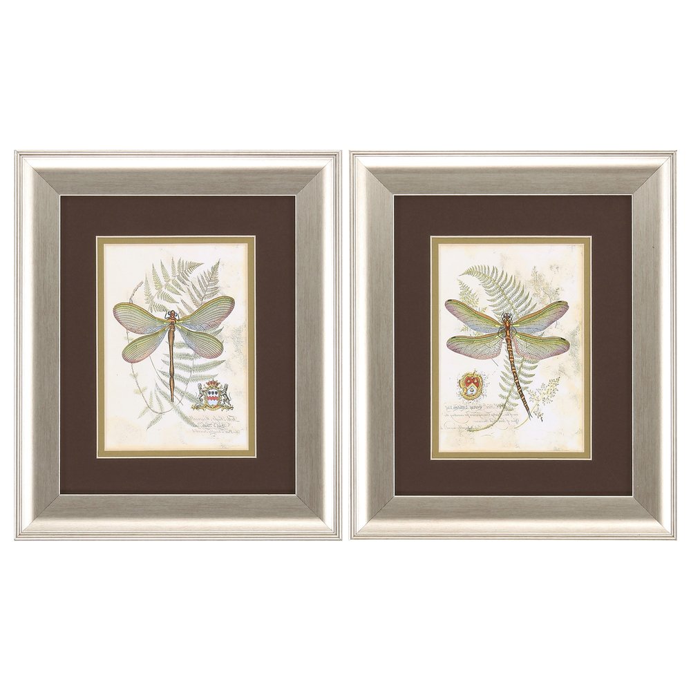 11" X 13" Brushed Silver Frame Dragonfly (Set Of 2)