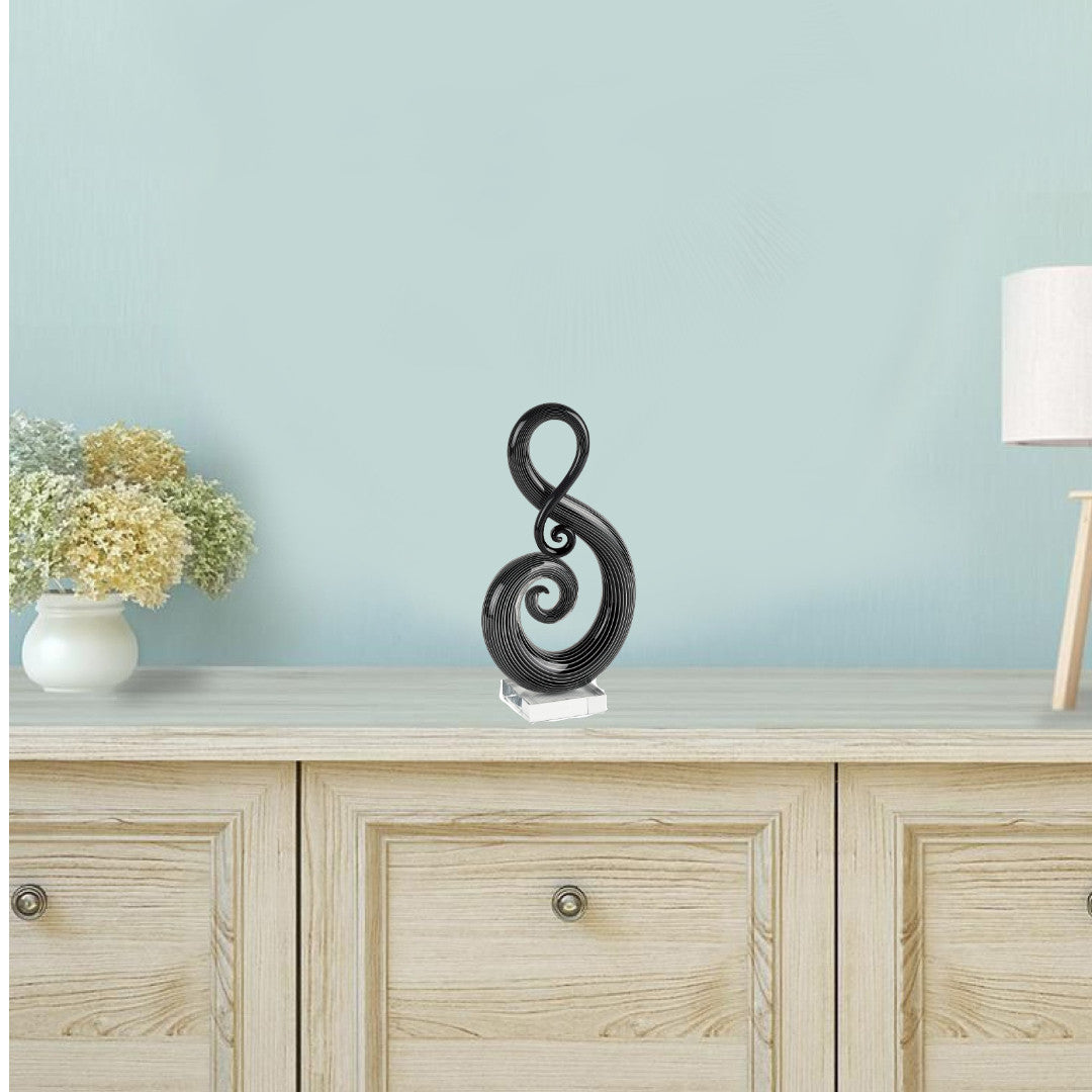 This 12-inch black and white Murano glass modern abstract tabletop sculpture will add a beautiful decorative accent to your decor. This black and white hued piece represents high quality, expertly made from high grade Murano glass. A perfect decorative addition for anyone who loves a stylish look and feel. 12-inch H x 3-inch W x 6.5-inch D