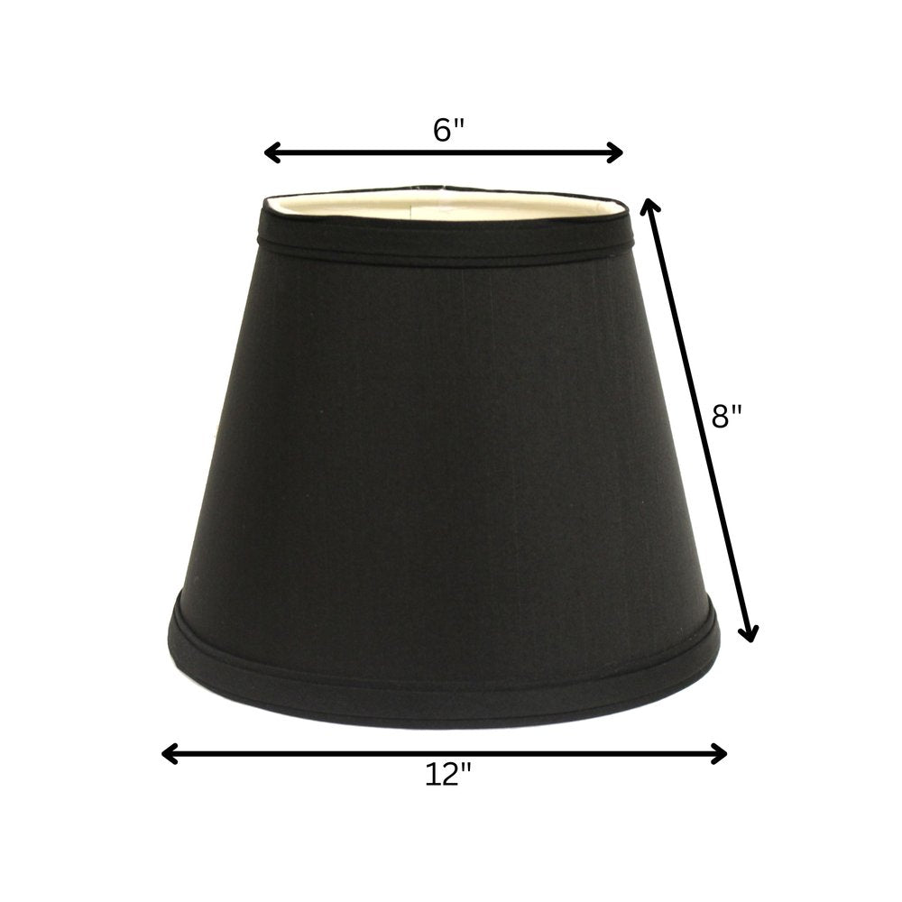 The black shantung silk empire lamp shade brings a touch of elegance to your decor. Crafted from luxurious shantung silk, its rich black color adds sophistication to any room. This traditional lamp shade features a classic empire shape, making it a timeless addition to your lighting collection. With a top width and depth of 6 inches, it fits perfectly on various lamp bases. The slant height of 8 inches ensures an ideal light diffusion, creating a warm ambiance. Designed with a spider attachment type, it offers easy installation and stability. Elevate your home décor with this exquisite piece that enhances both style and functionality. 8.00-inch h x 12.00-inch w x 12.00-inch d.