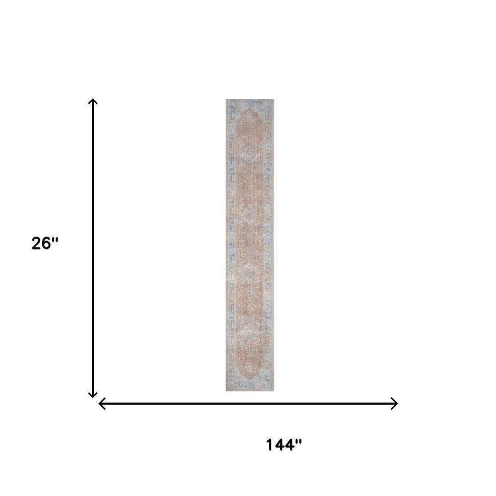 Add some artistry to your room with this 12-foot brown and blue oriental power loom distressed runner rug. This runner shaped rug features a oriental design in brown and blue to give it visual interest. A classic shape marries with good looking design for your space Place this area rug against a hardwood or tile floor and it will enliven your living space with style and sophistication. .25-inch H x 26.00-inch W x 144.00-inch D