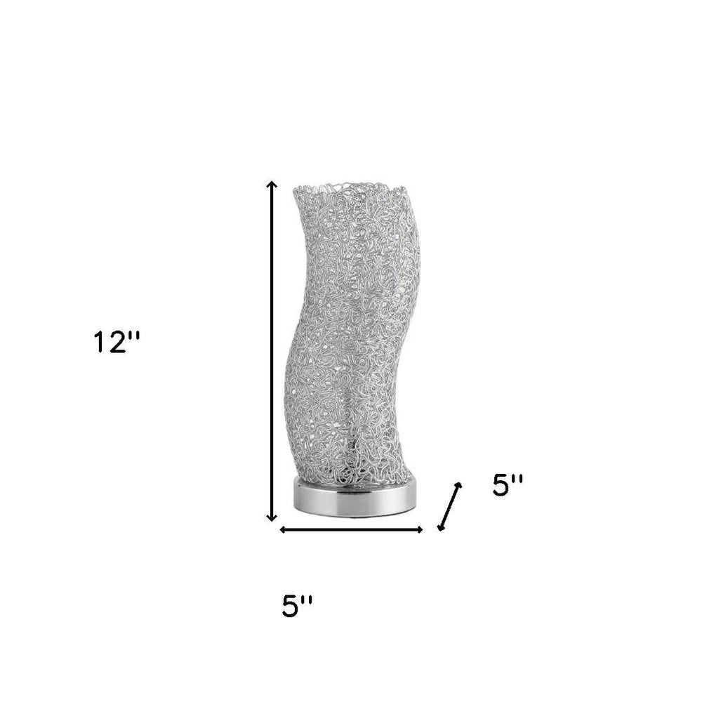 Add a bright anchor to your room with this 12" silver bedside table lamp with silver swirl novelty shade. The silver novelty metal shade is a great compliment to this lamp. Bedside table lamps help to add a soft and cozy glow to your bedroom. Great for evening reading! Use this lamp anywhere and elevate the look of the whole space. It is perfect for virtually any decor. 12" H x 5" W x 5" D