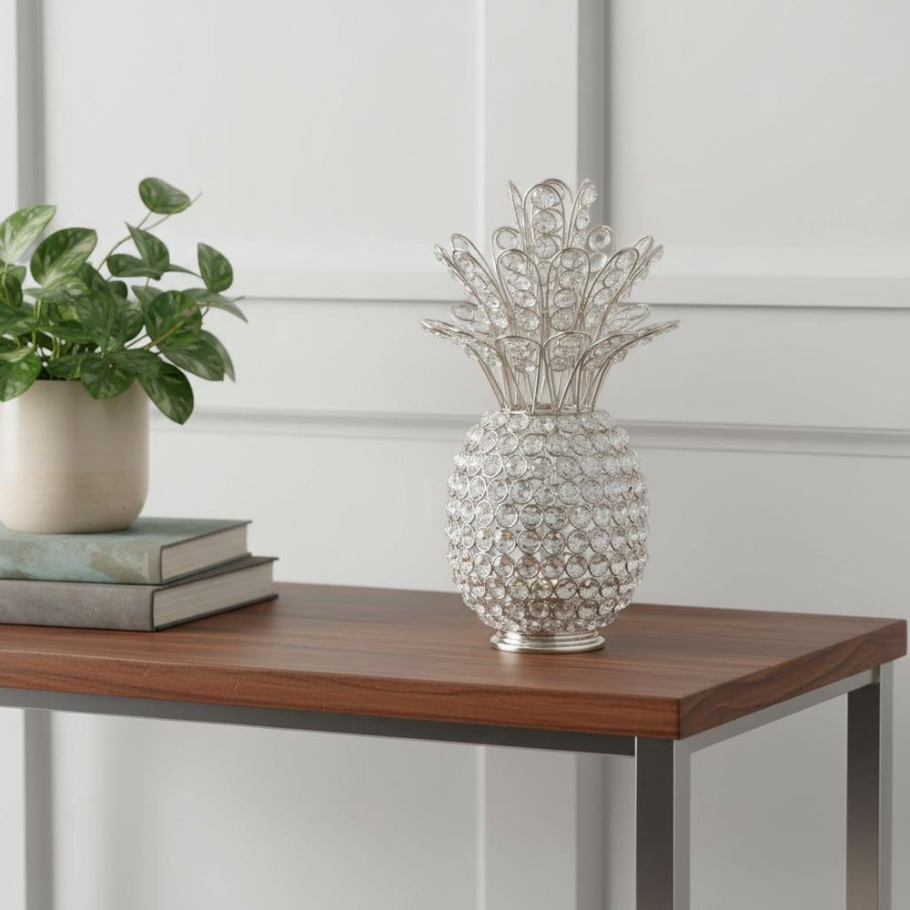 Bring some sizzle to your space with this eye-catching 13-inch silver metal decorative pineapple. This silver hued piece represents high quality, expertly made from high grade metal. A perfect decorative addition for anyone who loves a stylish look and feel. 12.5-inch H x 6-inch W x 6-inch D