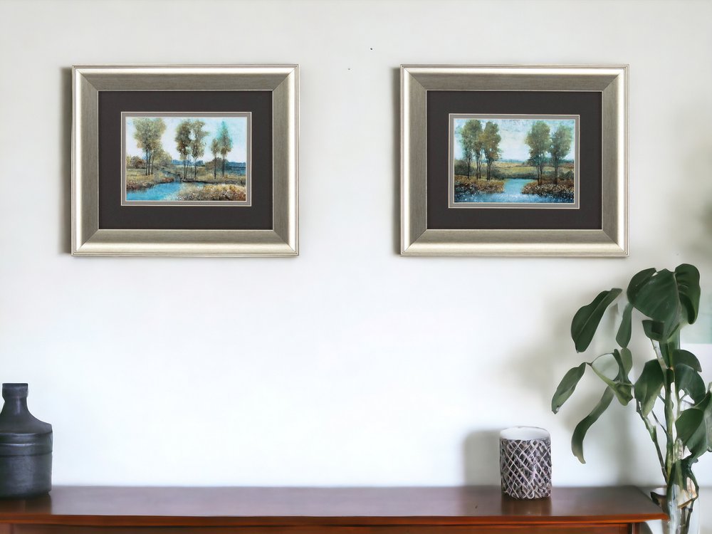 13" X 11" Brushed Silver Frame Stream Side (Set Of 2)