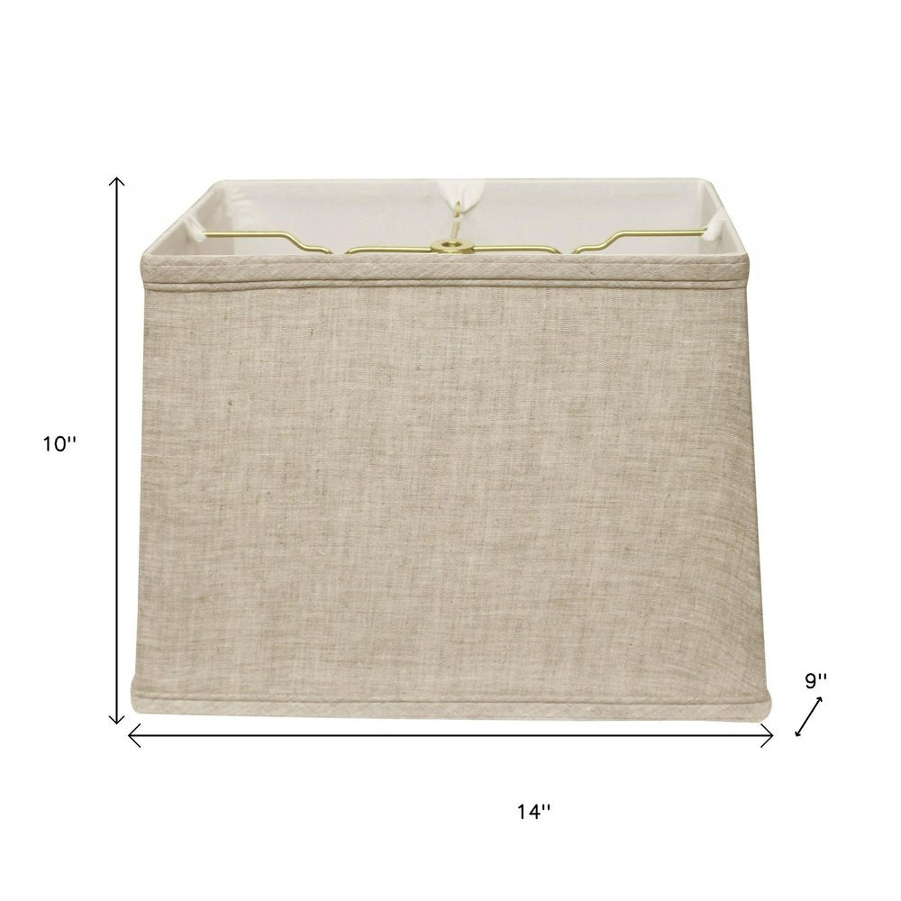 The cream linen print lamp shade adds a touch of elegance to any room. Its rectangular shape beautifully complements mid-century decor while enhancing the timeless appeal of your space. Crafted from high-quality linen, this shade features a delicate print that creates a warm ambiance when illuminated. Designed with a spider attachment, it ensures a secure fit on your lamp base. The soft cream color seamlessly blends with various color palettes, making it a versatile choice for your home. With a top depth of 7 inches, it is perfectly proportioned to diffuse light effectively, creating a cozy atmosphere in your living area or bedroom. Elevate your lighting with this stylish and functional accessory that resonates with sophistication. 10.00-inch h x 14.00-inch w x 9.00-inch d.
