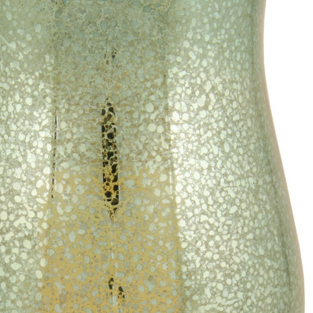 14" Green Glass Centerpiece Hurricane Candle Holder With Candle