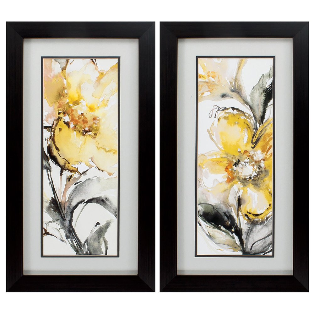 14" X 26" Brown Frame Golden Flower (Set Of 2)
