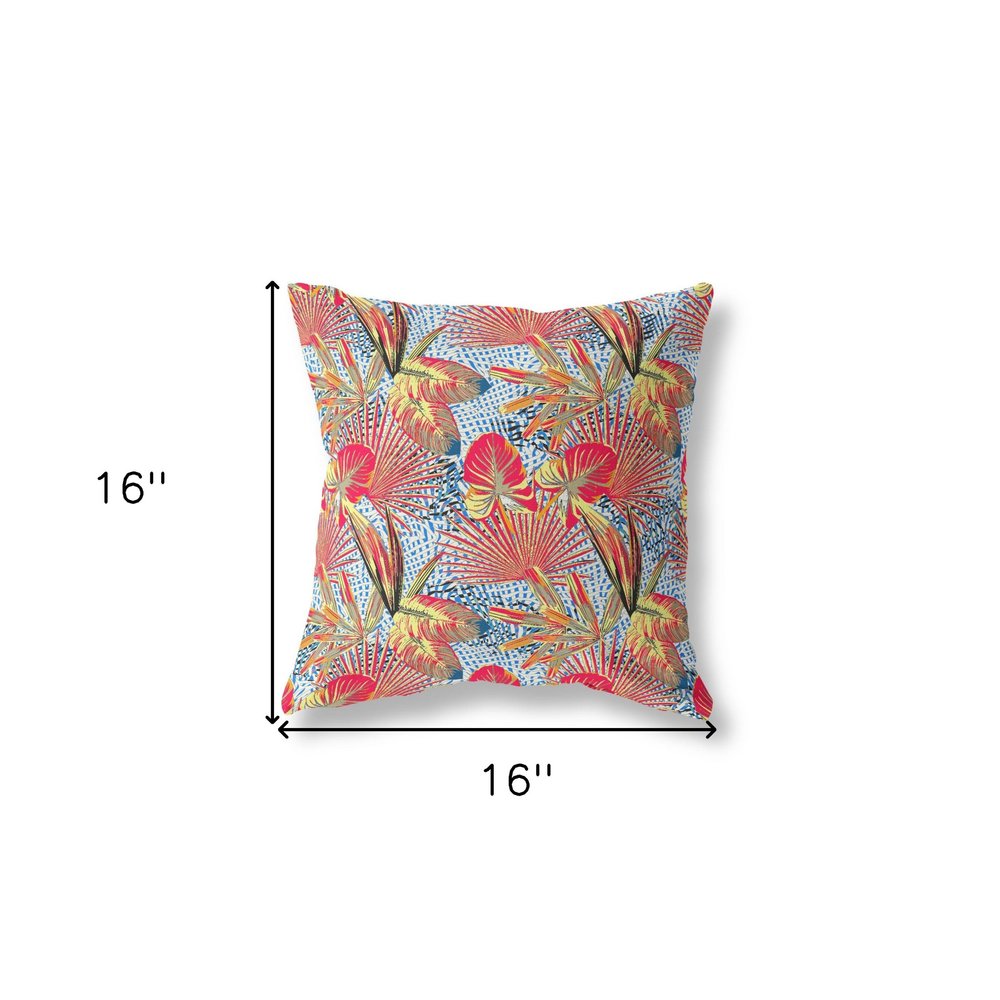 16” Crimson Yellow Tropical Indoor Outdoor Throw Pillow