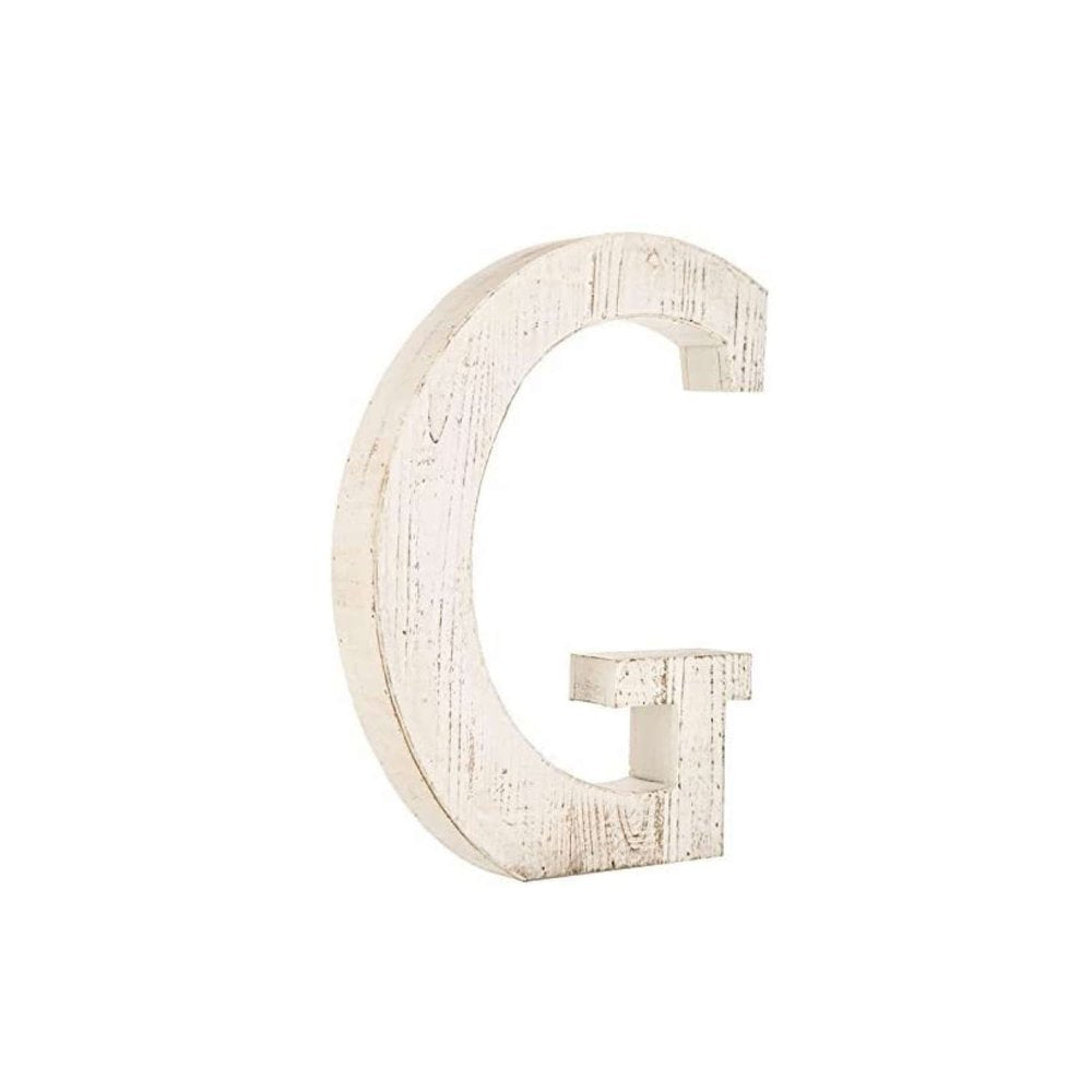 16" Distressed White Wash Wooden Initial Letter G Sculpture
