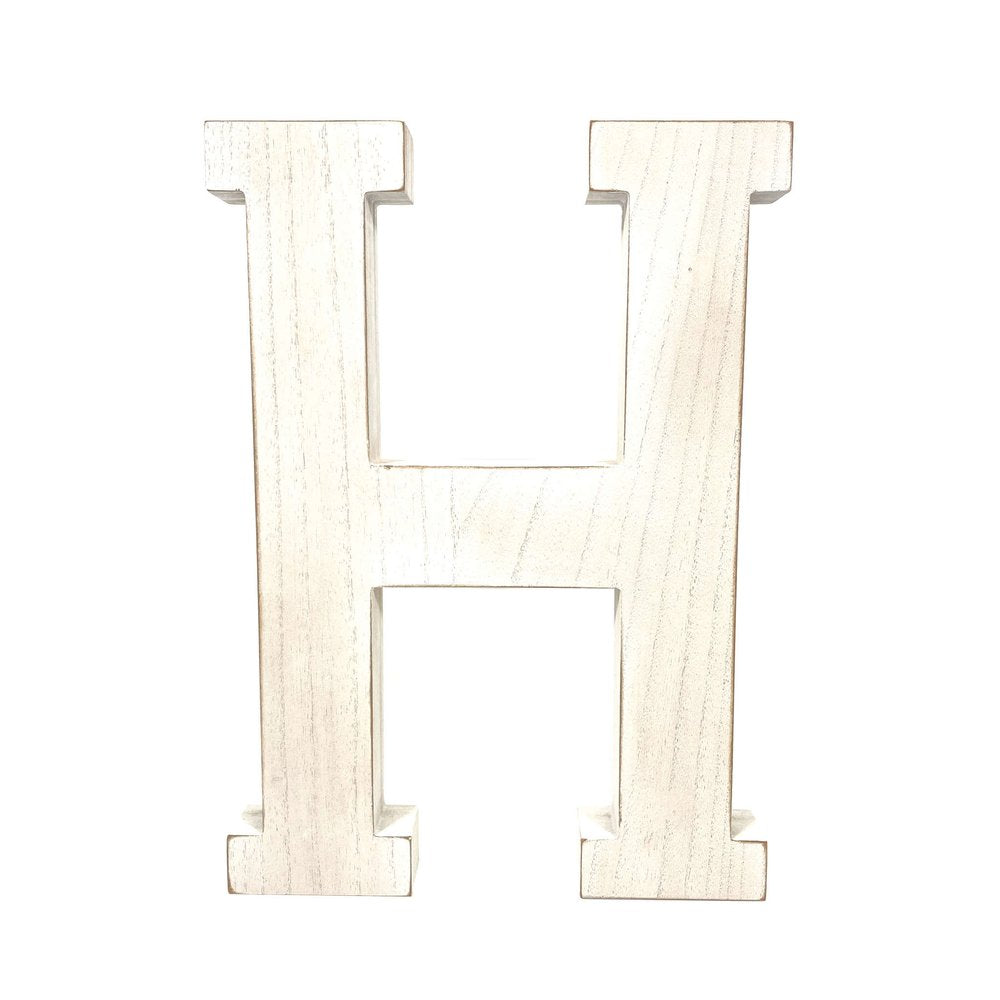 16" Distressed White Wash Wooden Initial Letter H Sculpture