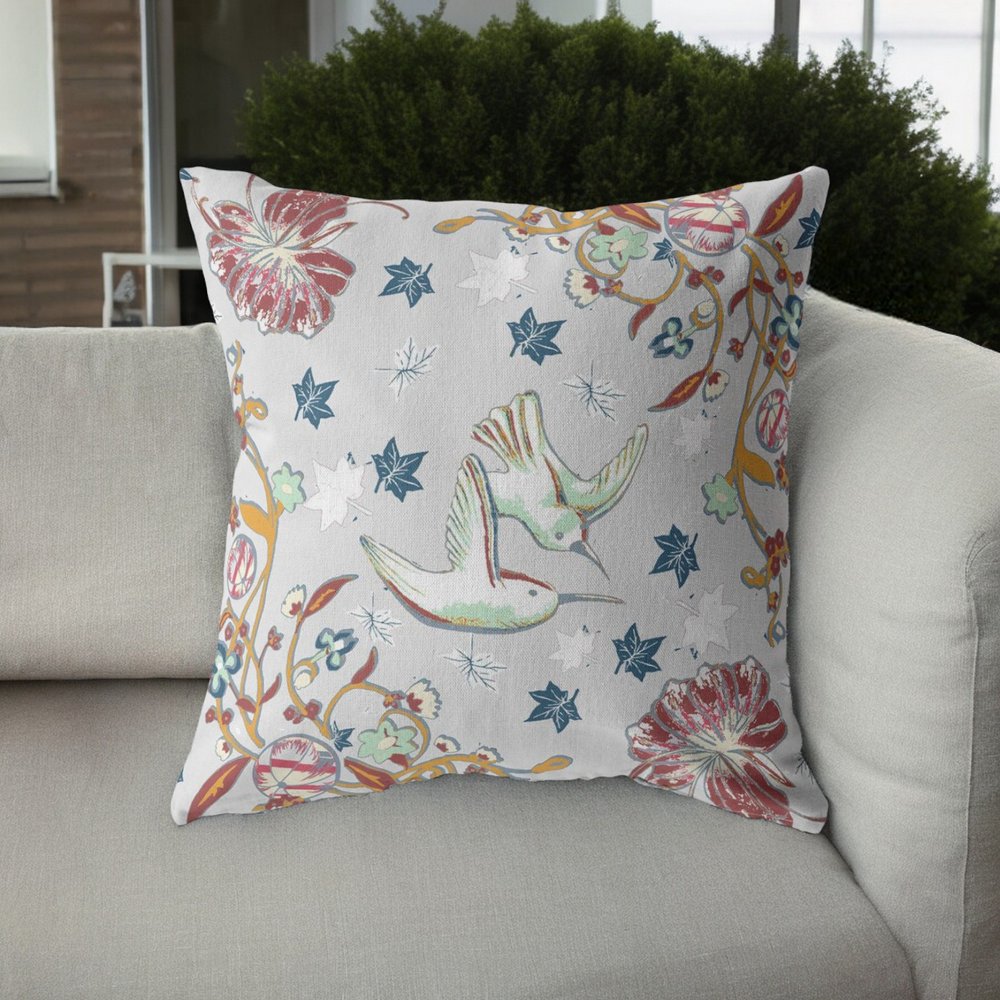Bring out your inner playfulness with this beautiful Gray Bird and Nature Indoor Outdoor Throw Pillow that embodies festive vibes in a modern package. The vibrant colors on the soft gray base bring out the floral and bird artwork in the most soothing way. The pristine look of the high-quality digital print on the pillow is made to last long, while the color intensity stays the same even through an infinite number of washes. Made in the United States with premium broadcloth fabric, this piece ensures that you get the best quality in terms of looks and comfort. The blown throw pillow features a soft polyfill insert, perfect for everyday use in indoor and outdoor spaces. The vibrant hues and joyful patterns of this decorative pillow will add a relaxing touch to your modern or bohemian home while staying in tune with the colors of the seasons. 16” x 16” x 5”
