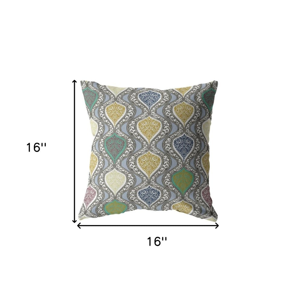 16” Gray Gold Ogee Indoor Outdoor Throw Pillow