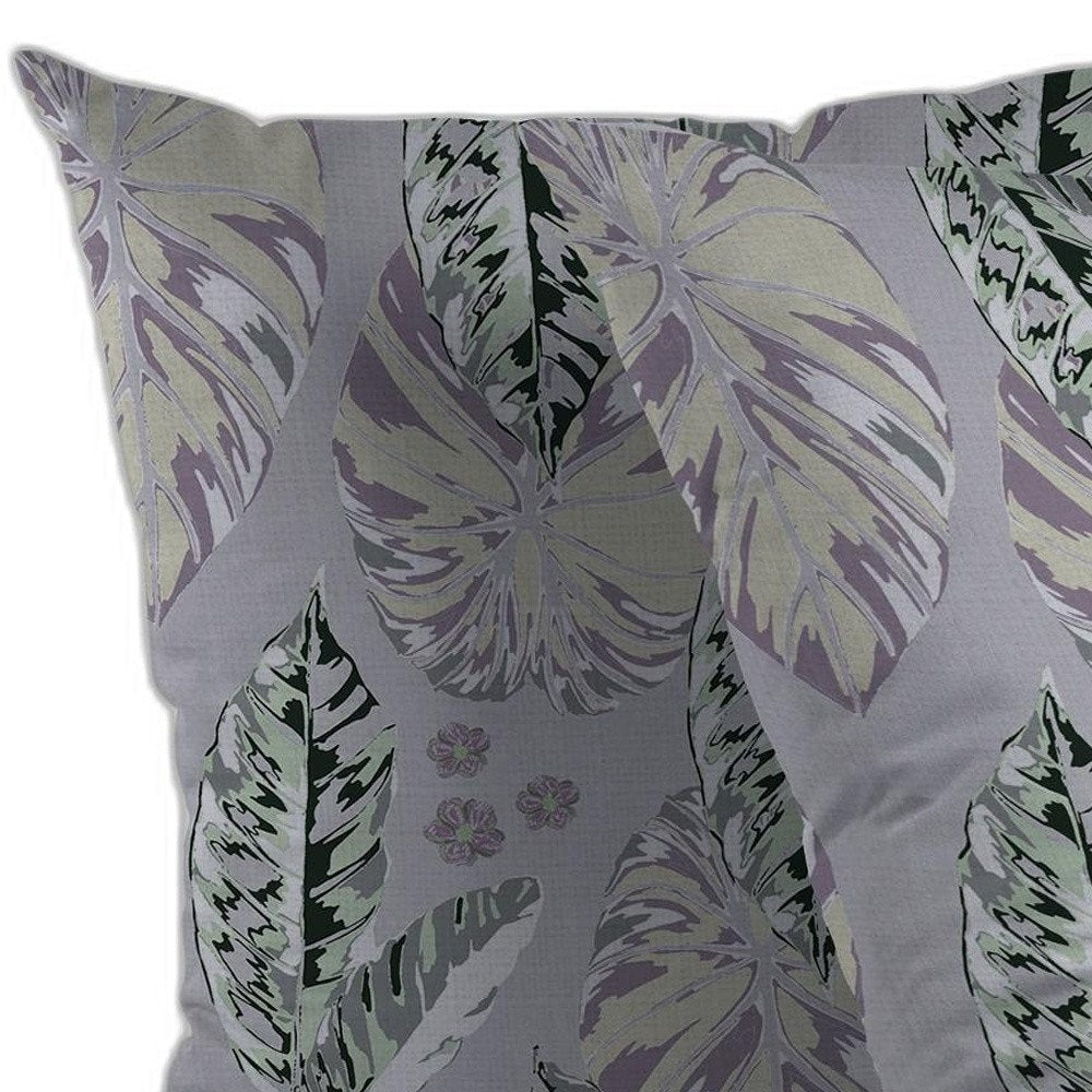 16” Gray Purple Tropical Leaf Indoor Outdoor Throw Pillow